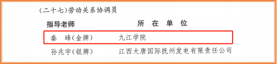 近日,由江西省人民政府主办,江西省人力资源和社会保障厅、南昌市人民政府共同承办的江西省第一届职业技能大赛落下帷幕,永利yl23411集团官网机械与智能制造学院职工彭程获得省赛精选项目数控车组铜牌,管理学院教师秦峰、机械与智能制造学院教师彭晓玲分别获评省赛精选项目劳动关系协调员组和数控车组优秀指导老师。永利yl23411集团官网毕业生罗辉、黄佳莹分获省赛精选项目劳动关系协调员组冠、亚军。