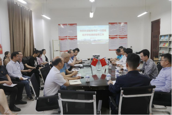 经济学院党政负责人在会上作了申硕工作汇报,赵伟边听边与大家在师资构成、学科建设、服务企业、学术研究和人才引进等方面作了深入探讨。
