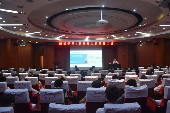 刘青松研究员还应邀主讲鄱阳湖大课堂,为长江生态文明试验班第一期、第二期全体同学和资源环境学院师生代表作题为《生态文明示范建设理论与实践》的报告,围绕生态文明建设的意义及价值、理论与实践内涵等内容深入浅出地进行了阐释。