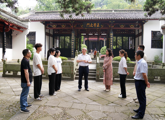 6月10日上午,为弘扬优秀传统文化,充分发挥文化育人功能,推动以文化人,培根铸魂,校长陈小林博士、文学院何春根博士、庐山文化研究中心黄为俊博士与包括苏瑞在内的6名来自文学院、国际交流学院等二级学院的学生代表,相约在享有“海内第一书院”美誉的白鹿洞书院。大家跟随讲解员的脚步,参观白鹿洞、明伦堂、礼圣殿、朱子祠等,穿过棂星门,走过状元桥,移步换“景”,聆听庐山白鹿洞书院管理所书记、所长杨德胜讲述白鹿洞书院的由来、历史和典故,现场领略感悟白鹿洞书院悠久的历史文化和丰厚的人文底蕴。