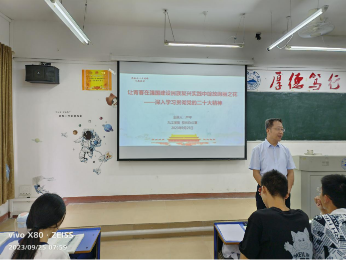 9月25日,永利yl23411集团官网2023级新生迎来了进入大学后的第一课。校领导李明斌、陈小林、王万山、夏启国、严平、查振华、李广欣、王殿元、李松志走上讲台,围绕深入学习贯彻党的二十大精神、习近平总书记视察江西重要讲话精神等内容,为新生讲授了大学第一堂思政课,勉励广大新生奋进新征程、建功新时代,为实现中华民族伟大复兴贡献青春力量。