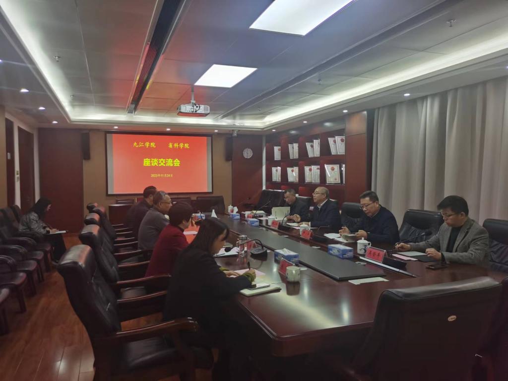会上,陈小林介绍了九江学院概况和师资力量、学科建设、科研合作、成果转化等情况以及人才工作中遇到的问题。章国勇对陈小林一行表示热烈欢迎,介绍了省科学院的基本情况、人才队伍、科研项目、成果转化、与中国科学院等国家级大院大所的合作情况。随后,双方围绕科技人才激励机制建设、人才引进政策、服务地方经济社会发展、双方合作交流方向等内容进行了交流。