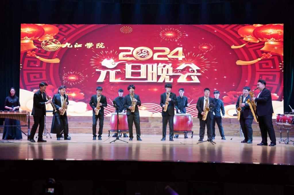 《八月桂花遍地开》《喜洋洋》,古筝、二胡、琵琶、笛子、贝斯齐上阵,配合绚丽的灯光将古典与时尚有机融合,让大家一同感受那充满欢喜的场景和洋溢着喜悦和幸福的氛围,磅礴的气势寓意着九江学院人将再创辉煌!