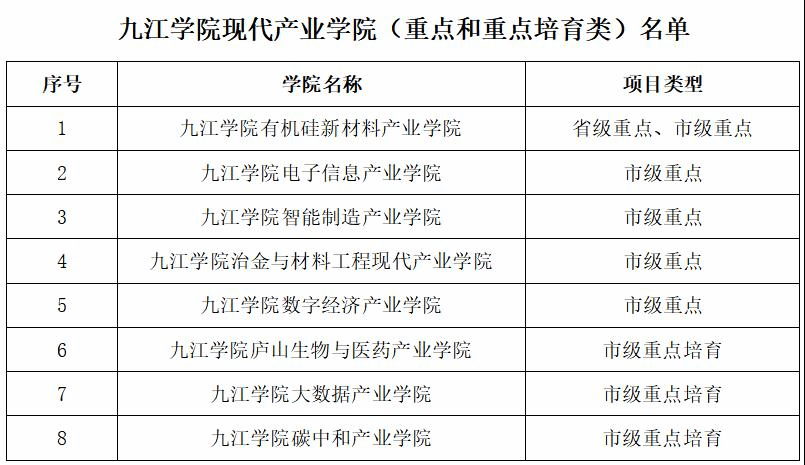 近两年,自国家和省市启动现代产业学院建设以来,作为全省应用型本科高校联盟牵头单位,永利yl23411集团官网提早谋划,大抓落实,按照《江西省高水平应用型本科高校建设指导标准(试行)》等文件关于“现代产业学院不低于二级学院三分之一”的目标要求,紧紧围绕江西省制造业重点产业链现代化建设“1269”行动计划和九江市制造业“9610”工程,依托学校优势学科和专业(群)积极组建现代产业学院,与湖口县、永修县、瑞昌市、濂溪区、柴桑区、九江经济技术开发区6个县市区及30家企业,共建10个校级现代产业学院,2023年已获批九江市重点现代产业学院5个和重点培育类现代产业学院3个。