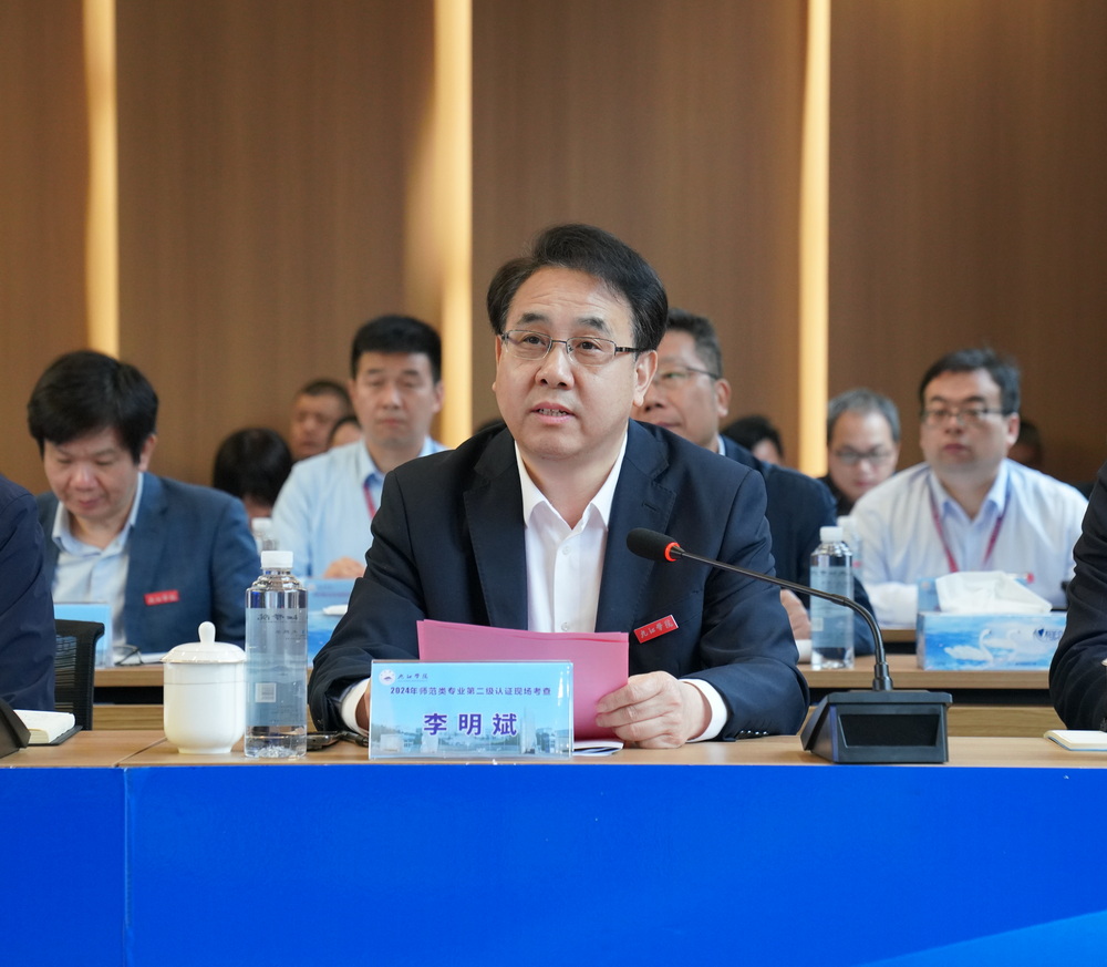 李明斌在致辞中向各位专家、领导来校考查指导表示热烈欢迎和衷心感谢。他简要介绍了学校的办学历史沿革、师范教育发展历史、教师教育办学特色等基本情况。他指出,此次师范类专业认证,既是对学校师范类专业建设的深度检验,也是学校向各位专家学习取经的良机。学校将珍惜和抓住这次重大机遇,以积极的态度、认真负责的精神、实事求是的工作作风,全力配合专家组的工作,虚心接受专家的指导,确保认证工作顺利进行。