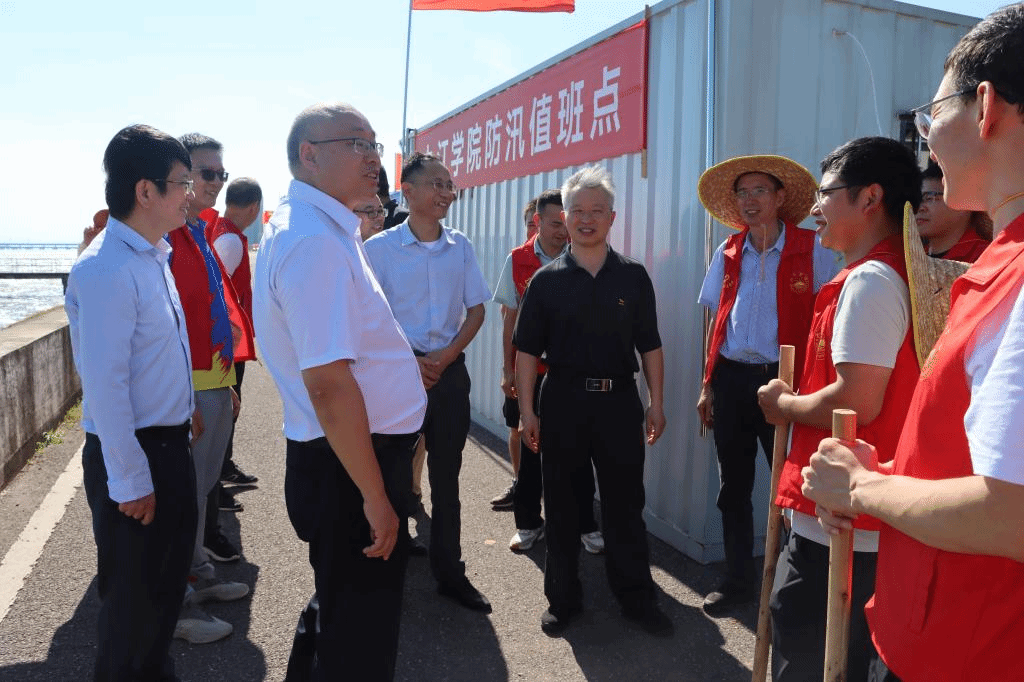 7月6日下午,校长陈小林,副校长王万山、王殿元、鲁卫东一行前往位于九江市赛城湖东堤的永利yl23411集团官网防汛值守点巡查指导防汛工作,看望慰问巡堤人员。