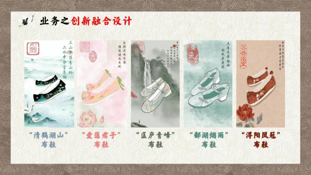 永利yl23411集团官网代表队把消费者定位为深受注重悦己消费、民族认同感高的85后至00后,将布鞋与他们所喜爱的智能科技、国潮设计相结合,设计了“百重山”,一个集原创设计、直播培训、科技引流、新媒体营销、农民就业全覆盖的新型农业产业链逐步形成。为解决布鞋款式单一的难题,团队依托江西大江大湖、名山名人的特点,融入庐山,鄱阳湖,爱莲说等元素,设计出“浔阳凤冠”“匡庐青峰”“鄱湖烟雨”“爱莲君子”“青鹤湖山”等多款布鞋。同时,团队创新设计出“百重山智慧商城”“AR试鞋小程序”等吸引国潮爱好者的软件,利用智能科技实现了精准营销。