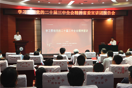 与会师生认真聆听、详细记录,一致认为,此次宣讲主题鲜明、内涵丰富、重点突出、深入浅出,对于深刻理解和准确把握党的二十届三中全会精神有重要指导作用。大家纷纷表示,要把学习贯彻党的二十届三中全会精神激发出的信心和斗志,转化为攻坚克难、勇往直前的干劲和力量,把学习成果转化为推动九江学院改革发展的生动实践。
