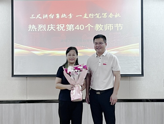 伴随着欢乐的音乐声,校领导为“优秀教师”“优秀教育工作者”“优秀辅导员”“优秀班主任”、长期从教三十年的教师代表和先进集体代表颁发荣誉证书和奖品。