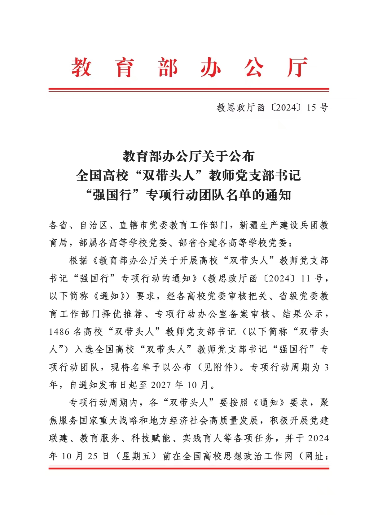 近日,教育部办公厅公布了全国高校“双带头人”教师党支部书记“强国行”专项行动团队名单,永利yl23411集团官网旅游与地理学院教工第二党支部成功入选,标志着永利yl23411集团官网在深化“双带头人”教师党支部书记队伍建设方面取得了新的突破。