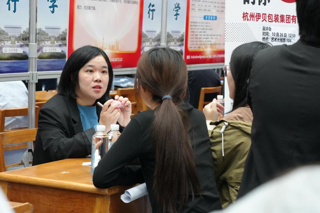 “校友招校友,既提高了岗位配置的针对性和时效性,又提高了就业服务精准度,达到了多方共赢!”校友企业对九江学院的人才培养质量给予高度评价,工作人员热情地介绍着公司文化和职业要求,认真阅读着每一位同学的简历,并给出意见和建议。