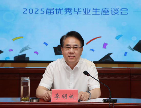 6月20日上午,学校在行政楼四号会议室举行2025届优秀毕业生座谈会。党委书记李明斌出席座谈会并讲话。党委副书记、校长陈小林主持座谈会。党委委员、组织部长杨杰参加会议。