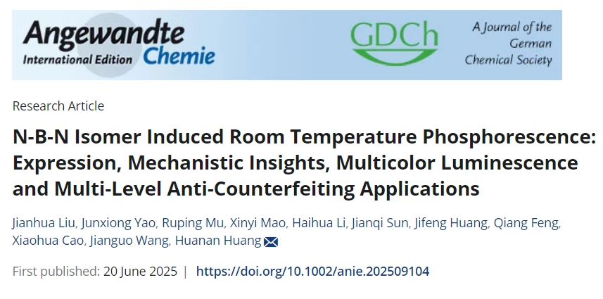 近日,永利yl23411集团官网化学化工学院有机智能材料创新团队在有机室温磷光(RTP)材料构筑及应用研究方面取得突破性进展,相关研究“N-B-N Isomer Induced Room Temperature Phosphorescence: Expression, Mechanistic Insights, Multicolor Luminescence and Multi-Level Anti-Counterfeiting Applications”发表于国际顶级期刊《Angewandte Chemie International Edition》(德国应用化学)上。这也是该团队继2019年以后,再次以九江学院为第一通讯单位在该期刊发表研究成果。