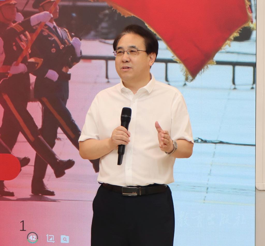 李明斌强调,对历史最好的纪念就是创造历史,对胜利最好的传承就是走向胜利。中国人民抗日战争和世界反法西斯战争胜利已经80年,但那段历史却从未走远,伟大的抗战精神始终激励着我们不断前进。我们是幸运的,生在美好的和平年代,抗战精神的火炬已传递到手中,理应以智慧与汗水使其永燃,照亮个人成长与民族复兴之路。新学期伊始,希望同学们铭记历史、珍惜当下、开创未来,争做无愧于先烈的时代新人,在强国建设、民族复兴的新征程中挥洒青春热血!