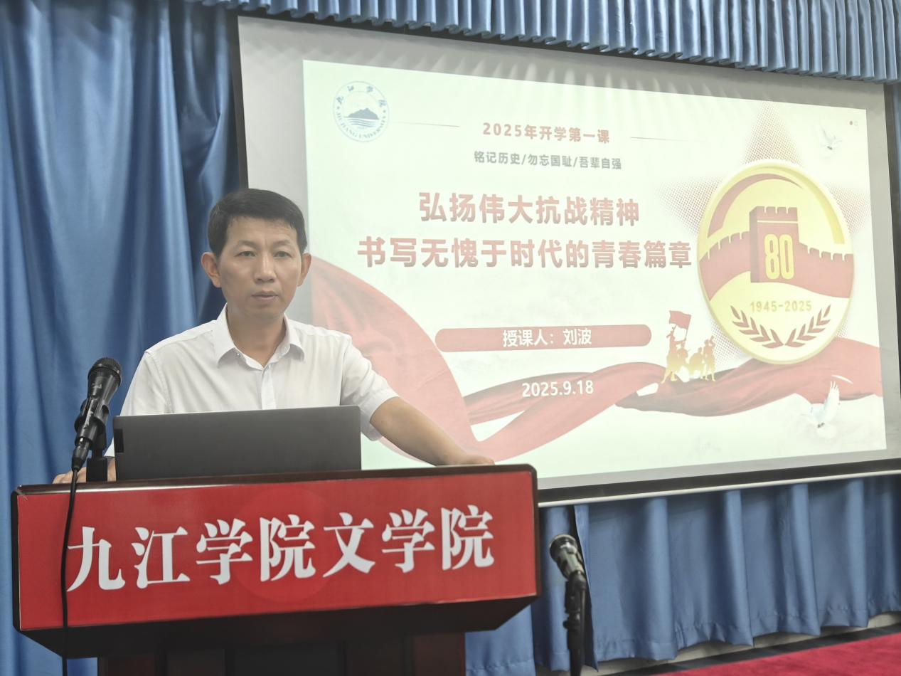 9月18日,党委委员、纪委书记刘波为文学院A2523和A2561班学生上思政课。