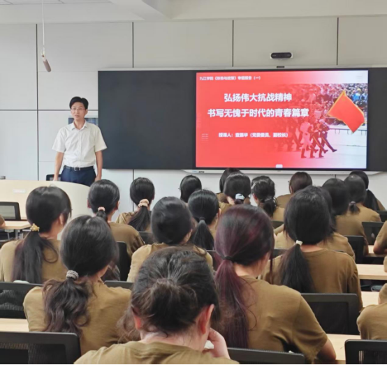 2025级新生以热烈掌声回应李书记的精彩讲授。地理科学A2521班曾芷彧同学表示:“伟大抗战精神似灯塔为我们指引方向,作为新时代青年,我们当以史为鉴,怀壮志于胸,将爱国情化为奋进力,在求知路上笃行不怠,勇挑民族复兴重担。”地理科学A2522班刘仕鹏同学表示:“我们要传承和弘扬伟大抗战精神,以青春为笔,以奋斗为墨,为中华民族伟大复兴、为教育强国建设贡献青春力量。”