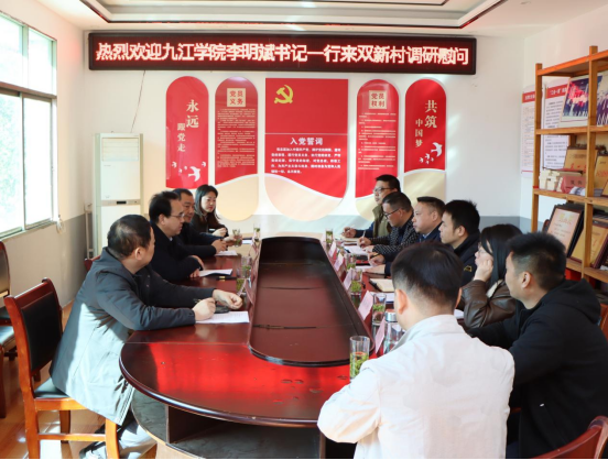 李明斌对武宁县、鲁溪镇两级党委政府关心支持学校驻村工作表示诚挚感谢,并就下一步驻村帮扶工作提出具体要求。他强调,要持续深化消费帮扶,依托学校资源优势,精准对接社会力量,不断拓宽农副产品线下销售渠道;要强化就业帮扶,主动拓展对外联络,通过多渠道信息发布为村内闲置劳动力搭建务工平台;要积极做好项目资金申报工作,争取更多政策与资金支持,扎实推进村内民生基础设施建设;要突出智力帮扶,充分发挥学校在人才、技术和信息方面的优势,推动双新村资源生态优势切实转化为产业发展优势。