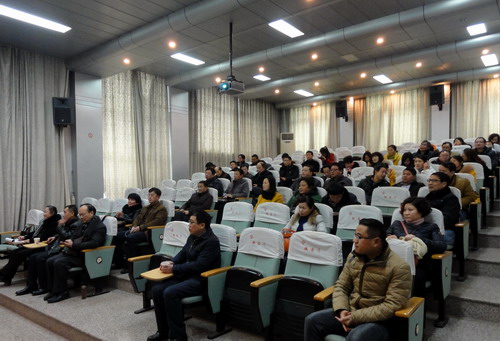 1月12日下午,基础医学院在浔东校区学术报告厅召开2015年教研论坛活动。本次论坛邀请南昌大学博士生导师高云教授做了《科技成果的申报体会》和九江学院医学部副部长向维聂教授做了《临床医学专业认证专题辅导》的学术报告。基础医学院车向新院长、余朝阳副书记、郑美蓉副院长、汪鑫副院长及基础医学院全体教师参加。本次教研论坛由车向新教授和郑美蓉教授主持。