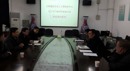1月30日下午,江西省生态化工工程技术中心与九江宇仁新材料有限公司在化环学院会议室签订了第一项横向技术合作项目。江西省生态化工工程中心严平教授、彭游教授、九江仁宇新材料杨成勇董事长、毛建平董事出席了签定仪式。签订仪式前,中心主任陶春元教授在百忙中亲切会见了九江宇仁新材料有限公司杨杨成勇董事长一行。
