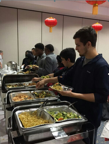 讲座结束后,在场的听众共同品尝了孔子学院从当地中餐馆订制的中国美食。