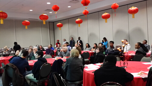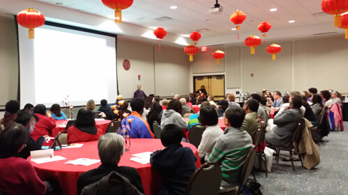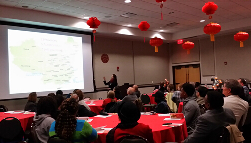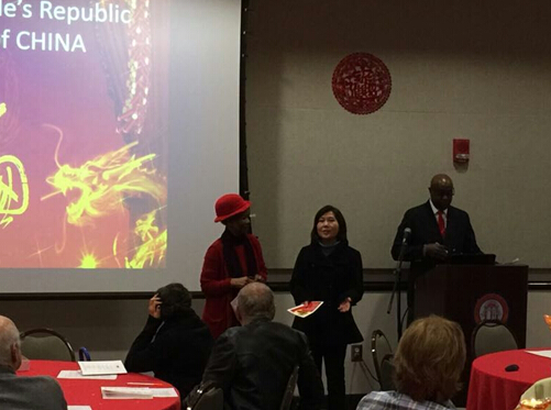 孔子学院中外方院长罗其娟致欢迎辞。她对大家的到来表示欢迎,对萨凡纳州立大学和社区群众对孔子学院的活动支持表示感谢。外方院长布佩吉(Peggy Blood)给大家介绍了孔院2015年的文化活动安排。