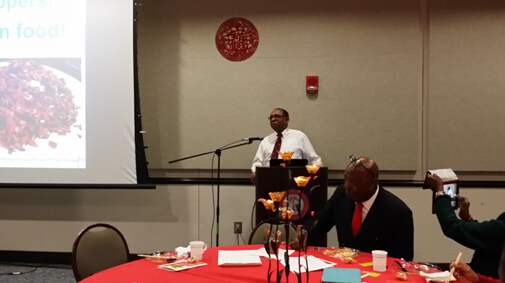 萨凡纳州立大学副校长Verret Reynold在讲话中说,这次活动不仅仅是萨凡纳州立大学的活动,也是社区的活动,很高兴孔子学院把中国的美食文化介绍给美国大学的师生和社区群众,并给大学和社区提供了一个交流和互助的平台。