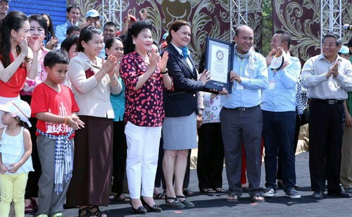 4月14、15、16日是柬埔寨新年,按照柬埔寨的习俗,柬新年三天,第一天为守岁,晚上各家各户张灯结彩,全家团聚迎接新年女神的到来;第二天为辞岁,人们去寺庙听诵经文;第三天为新岁,人们准备斋饭去寺庙布施,祈求佛祖在新的一年保佑平安。据悉,在吴哥区域举办了三天三夜的2015年“吴哥宋干”新年庆祝活动,给国内外游客留下了难以忘怀的美好印象。无论是大活动或小活动,都充满着高棉传统文化的独特魅力,而且今年的“吴哥宋干”期间,柬埔寨成功打破了两个世界纪录,重4.04吨“巨型”猪肉粽和2015人参加跳麦迪逊舞,给柬埔寨国家以及人民带来无比的荣耀。