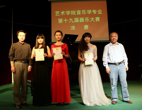 4月29日晚,艺术学院在香远楼报告厅举办了音乐学专业第十九届器乐大赛决赛,艺术学院院长吴维勇、党委书记王春生、副院长欧阳时来、团委学生科负责人以及音乐学专业全体师生共同观摩了此次器乐大赛。