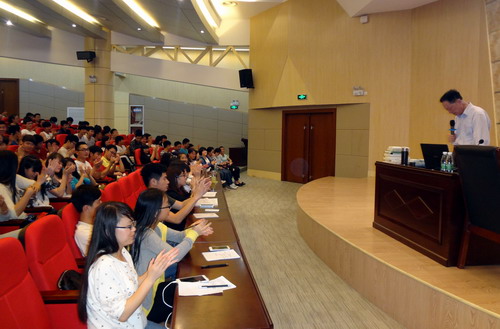 陈教授的讲座精彩纷呈,极具特色,时而娓娓道来,时而振聋发聩,时而激情澎湃,时而感人至深,整场讲座台上台下互动频频,掌声雷动,笑声不绝,气氛热烈,充满亲和力、感染力、震撼力,洋溢着正能量。70多岁高龄的陈忠教授坚持站着为同学们作了两个多小时的讲座,他的精神令人感动,令人鼓舞。