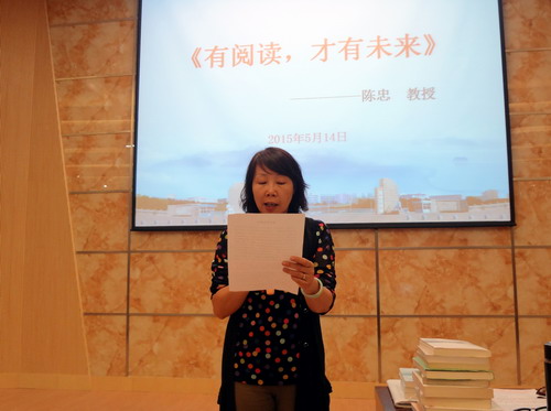 最后,邓燕书记对陈老师的讲座做了总结。她说:“陈老师的讲座内容丰富、发自肺腑、语重心长、启迪心灵;他时而亲切、时而慷慨、时而幽默的讲述风格,让我们深刻领会了‘有阅读,才有未来’的真谛。‘读万卷书、行万里路’、‘读书、读人、读生活’,这些语句无不体现了阅读的意义。正是陈老师的讲述,让我们体会到阅读的力量,阅读的精髓,只有阅读才能让我们成为文明的人、现代的人、智慧的人、快乐的人,‘有阅读,才有未来’,从现在开始让我们一起阅读吧!”