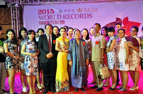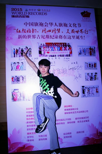 5月16日,中国旗袍会柬埔寨分会的百名会员与全球同时进行走秀活动,参与打破世界吉尼斯纪录的挑战。柬埔寨王家研究院院长、孔子学院理事长克罗提达阁下、教育部行政司司长陈浩等政府官员,孔子学院中方院长帅式毅,各界嘉宾,华社各界代表,孔子学院教师和志愿者等出席观看在金边速卡大酒店举行的旗袍秀活动。