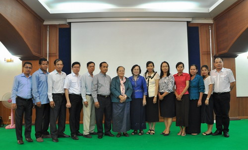 座谈会结束后,与会者共同观看了王家研究院的宣传片及孔子学院近期文化宣传片,克罗提达院长代表王家研究院向官员班学员及“汉语桥”中文比赛的优胜选手赠送了王家研究院院士洪森总理(Hun Sen)、索安副总理(Sok An)、文拉尼亲王(Bun Rany)等的专著。