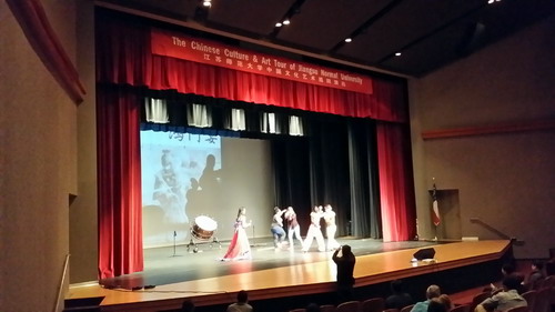 美国当地时间9月17日,由国家汉办组织的江苏师范大学艺术团在美国萨凡纳市成功举办赴美巡演的第一场演出。萨凡纳州立大学副校长兼教务长Kimberly Holmes女士,孔子学院中方院长罗其娟、美方院长Peggy Blood,阿姆斯特朗州立大学国际处处长James N. Anderson和当地500余名观众一起观看了演出。