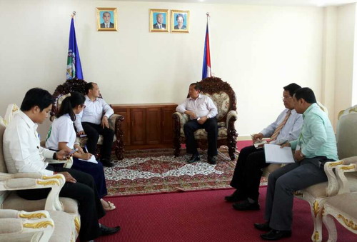 帅式毅先是送新任志愿者余洲、钱海乔到访茶胶省青年联合会汉语中心,受到了茶胶省青年联合会秘书长兴索昆(Mr. Heng Sokun)的热情接待。兴索昆介绍了茶胶省青年会的基本情况,茶胶省青年会成立以来,专注于本省青年的职业培训,先后开设了电脑课程、英文课程、高考补习班,相信将要开设的中文课程会受到青年会成员的欢迎。帅院长表示将加大茶胶省青年联合会汉语中心的建设,希望两位汉语教师志愿者教师平时没有中文课的时候来青年会从事志愿者工作,有可能的话还可以帮忙计算机和英文课的教学。