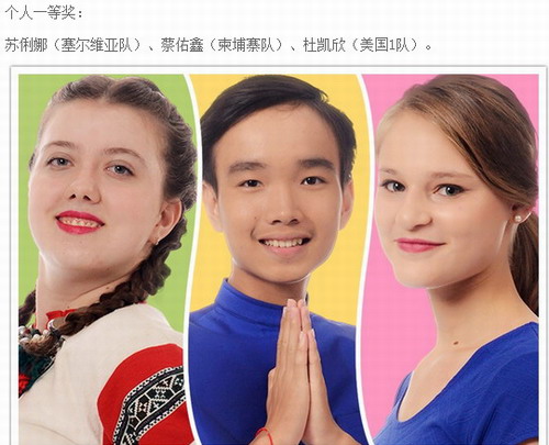 经过“上机笔试”、“能说会道”、“能歌善舞”三场比赛,第八届“汉语桥”世界中学生中文比赛17个团体晋级队出炉,柬埔寨队以团体最高分(第一名)进入17强,参加下一轮的团体赛。来自亚洲、大洋洲、欧洲、美洲和非洲的17队选手将参加晋级洲际赛,争夺17进10的名额。