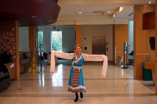 活动开始前,孔子学院中方院长罗其娟向大家介绍了孔子学院的基本情况,对阿姆斯特朗大学的热情邀请表示感谢,并欢迎大家到孔子学院学习交流。节目以张春子老师表演的充满了民族风情的藏族舞蹈《姑娘我爱你》开始,梁亚强老师为各国学生展示了精彩的太极拳拳术,永利yl23411集团官网交换生肖潇等合唱《明月几时有》,丁春雪老师为大家做了“中国剪纸艺术体验”的专题讲座。