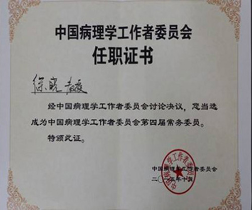 徐晓主任作为九江唯一一个全国病理学分会泌尿学组委员,全程参加了大会泌尿学组的讨论。汪亮亮医生的论文《纤维母细胞网状细胞肿瘤》被大会录用并选为大会发言论文,他也是江西唯一在大会上发言的年轻医师。在会上,临床医学院/附属医院病理科徐晓主任当选为中国病理学工作者第四届常务委员。