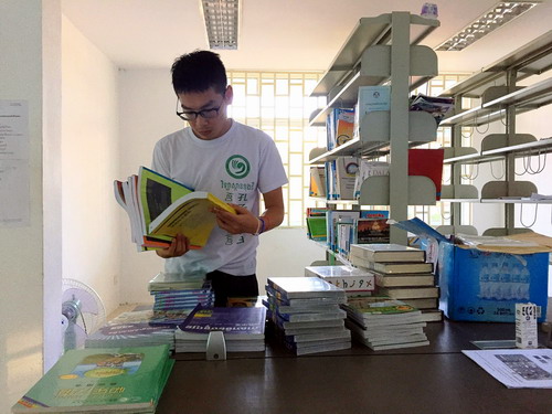 此次赠书由茶胶省汉语中心志愿者教师负责人余洲发起申请,得到孔子学院院长的大力支持,共筛选了三套不同难度的汉语教材、考试教辅和大量课外读物,在茶胶省青年联合会的图书馆建立起了完整的汉语学习进阶体系。