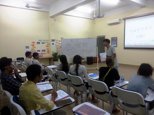 九江学院选派的汉语教师志愿者汪子君12月3日、12月6日分别在孔子学院劳工部汉语中心做汉语水平考试(HSK、HSKK)讲座。学员们了解到HSK、HSKK不仅仅是留学中国和申请奖学金的必备,也是竞争职场的优势。孔子学院学员林康德、丽雅和彭莉分享了参加考试的经验,参加过2015年大学生“汉语桥”比赛并喜获3等奖的孔子学院学员林淑娟表达了自己想去中国留学的强烈愿望。