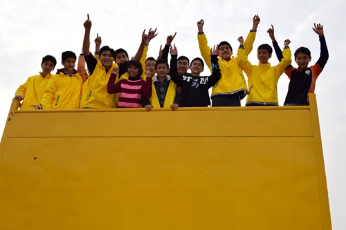 华裔青少年们对拓展训练活动表现出十分的积极性,配合默契的完成了团体协作比赛。尤其是在“毕业墙”攀爬的拓展训练项目中,华裔青少年们通过互相奋力协助共同与小伙伴们登顶墙峰,最后合影记录下这份珍贵的友谊和流露出的胜利喜悦。