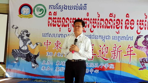 柬埔寨孔子学院茶胶省青年会汉语中心举行“中柬交汇,喜迎新年”庆典活动