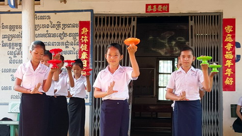 1月17日大岛洪森中学汉语中心学生表演的柬埔寨祝福舞