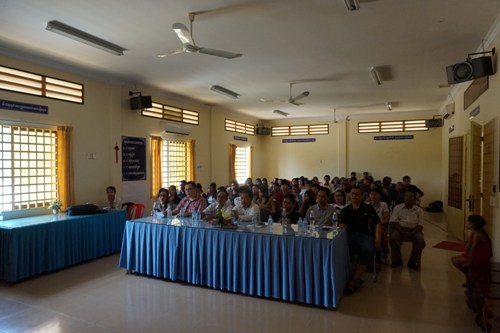3月27日,柬埔寨王家研究院孔子学院西哈努克省高级中学汉语中心举办“西港好声音”中文歌曲大赛。此次活动汉语中心柬方负责人王浩(Nivorth)老师、西港教育局办公室主任林江老师、西港高中副校长詹多德(Chan Tradeth)、汉办教师石荣珂和蔡小敏老师、侨办外派教师吕俊桥老师和陆康老师以及新加坡Coola公司陈治光先生受邀出席并担任评委。活动由汉语中心的赵小雪老师主持,汉语中心师生及热情观众100余人参加了此次活动。