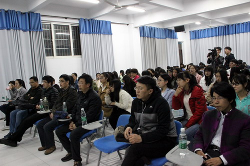 仪式上,李宁宁教授从“天时、地利、人和”三个方面对国学社的发展方向进行了深刻阐释。近日,海昏侯墓发掘的最新消息举国瞩目,江西省的传统文化建设取得较大成就。永利yl23411集团官网位于庐山之麓,鄱阳之畔,长江之滨。又有白鹿洞书院的文化熏陶,东林寺的佛教洗礼。国学社的成立,为同学们提供了砥砺思想的平台,师生们要共同参与,互相激发,推动国学社的健康发展。