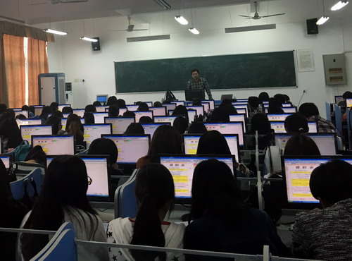 4月15日下午,永利yl23411集团官网外国语学院PUE平台跨境电商项目电商知识培训第四讲在香远楼515多媒体教室开课。根据课程的需要,此次课堂移至多媒体授课,使学生能使用电脑操作,活学活用。参加本次课程的有外国语学院各教研室老师和PUE初级班全体学生。