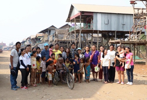 孔子学院师生和柬青年会会员在吴哥宋干节开幕式上合影