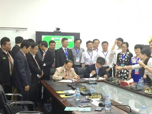 贵州省教育厅杨勇副厅长代表贵州高校感谢亚欧大学的热情接待,他向亚欧大学介绍了贵州省政府十分重视贵州省教育的对外交流,特别注重与东盟各国的交流,已经成功举办连续8届中国—东盟教育周,第九届中国—东盟教育周也将在今年8月举办,他代表组委会诚挚邀请柬埔寨高校参加此次展会,并向亚欧大学发了邀请函。