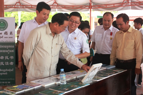 柬埔寨参议院秘书局副秘书长隆才阁下(H.E. Loak Chhay),参议院培训办主任诺昆(NOP Kuch),孔子学院院长、参议院顾问谢莫尼勒阁下(H.E. CHEA Munyrith),孔子学院中方院长帅式毅,柬埔寨教育青年体育部学前教育教师培训中心主任娜索丽达女士(PRAK Solida),金边中国文化之家新知书局全彦钢经理,参议院官员、孔子学院师生、西部大学及亚欧大学师生等150余人出席仪式并参观图书展。
