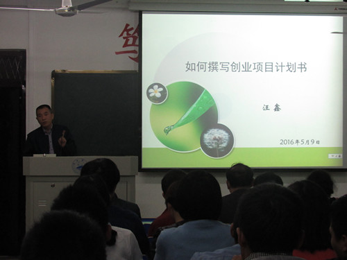 汪鑫副院长介绍了以往比赛的经验、收获、注意事项,他首先介绍了如何撰写计划书,并说明了计划书的作用、结构与内容。还特意告知指导老师与同学们应该注重独特性和竞争优势这两大特点,力求避免“假、大、空、快”。