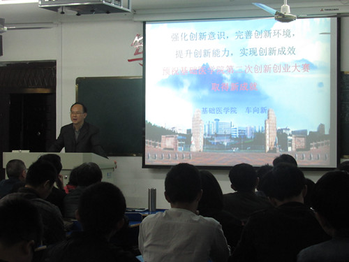 会上,车向新院长作了讲话,他提出创新创业在做好“what”、“why”、“how”这三大方面,指出了“更新”“创造新事物”“改变”的三层含义,鼓励每个人都要积极思考为国家的未来作出贡献,也要强化创新意识,完善创新环境,提升创新能力,实现创新成效,并预祝基础医学院第二次创新创业大赛取得新成就!
